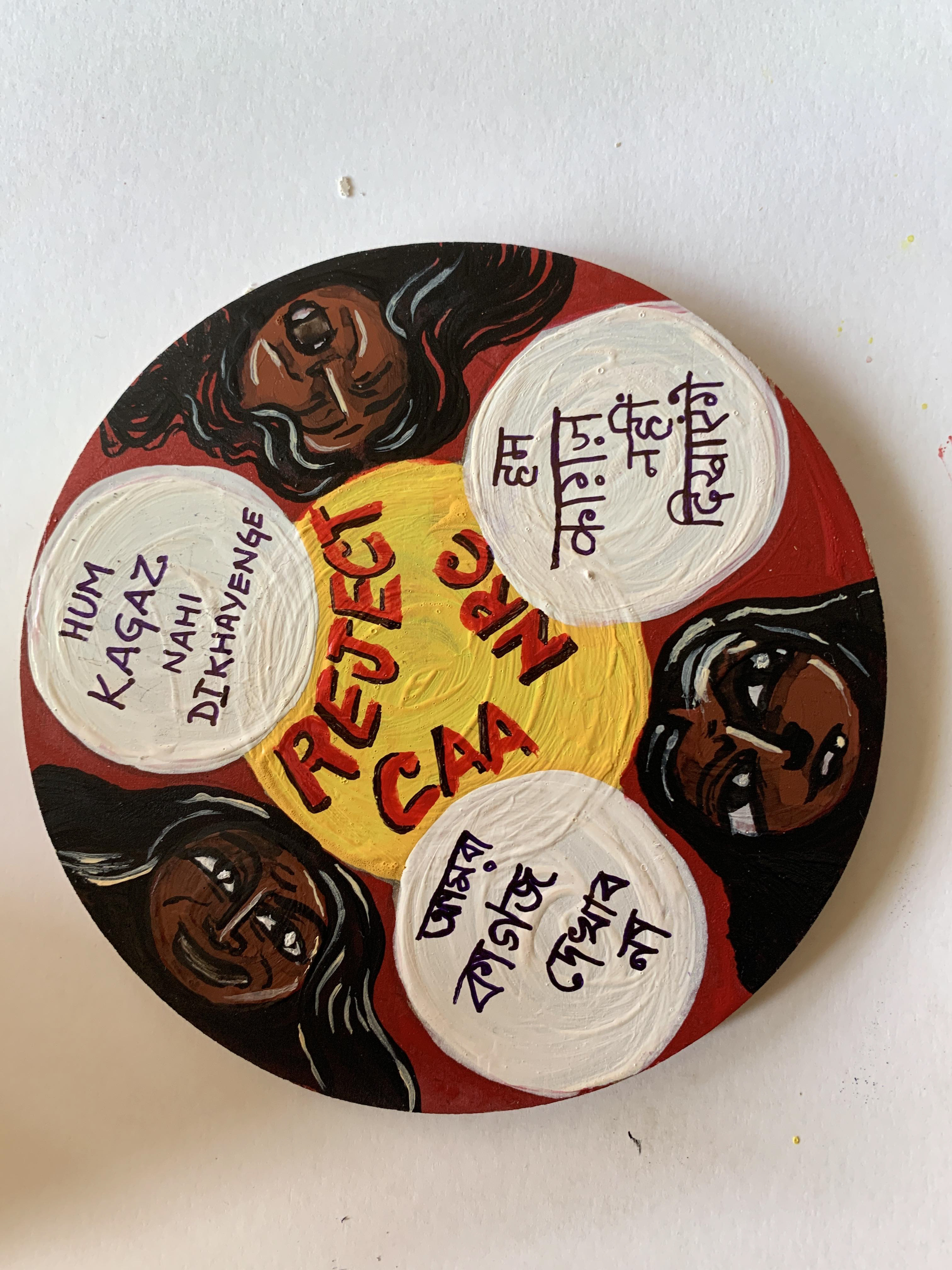Hand-painted acrylic cork coasters to resist fascist laws